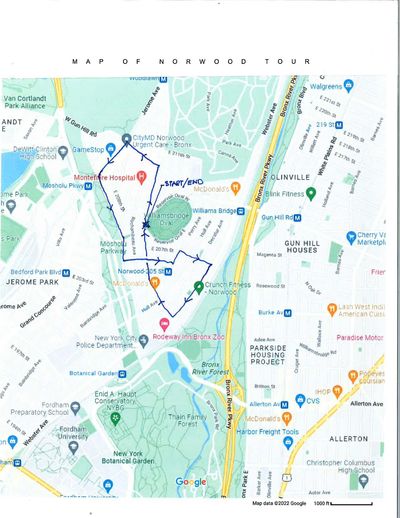 The walking tour will begin and end at the intersection of 252nd Street & Independence Avenue, Bronx NY